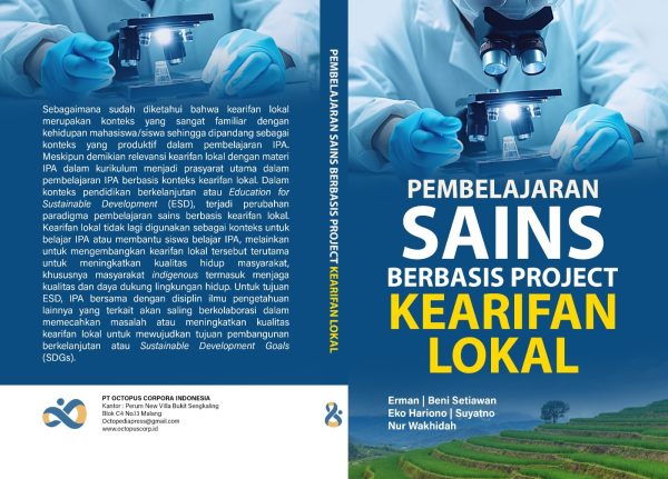 Dalam pembelajaran sains, pemanfaatan kearifan lokal dalam pembelajaran seringkali hanya ditinjau dari paradigma lama, yaitu sebagai konteks pembelajaran agar mudah memahami konten materi IPA. Berbeda dengan paradigma lama, Buku ini mendeskripsikan pembelajaran sains dengan paradigma baru, yaitu Science Education for Sustainable Development (SESD). Perubahan paradigma dari sebagai konteks pembelajaran IPA menjadi SESD bukanlah hal yang mudah terutama jika masih mengalami masalah dalam pembelajaran dan belajar konten IPA. Itulah sebabnya buku disusun untuk membantu Pembaca, khusus guru atau dosen IPA (termasuk fisika kimia, dan biologi) mengembangkan paradigma SESD dalam pembelajaran sains berbasis kearifan local untuk mewujudkan tujuan pembangunan berkelanjutan atau sustainable development goals (SDGs). Dalam paradigma SESD, belajar IPA tidak lagi untuk sekedar memahami konten materi IPA, melainkan untuk menggunakan IPA berkolaborasi dengan bidang ilmu lain yang terkait untuk mengembangkan memecahkan masalah dalam kehidupan sosial dan project. Kearifan lokal dipilih sebagai konteks karena sangat familiar dengan kehidupan sosial siswa atau mahasiswa, juga paling berpotensi mewujudkan SDGs bagi masyarakat indigenous dan sekitarnya. Oleh karena itu, kajian buku ini diawali dengan mengenal pembelajaran sains berbasis project dan paradigma pembelajaran sains berbasis kearifan local dan diakhiri dengan implementasinya dalam pembelajaran sains.